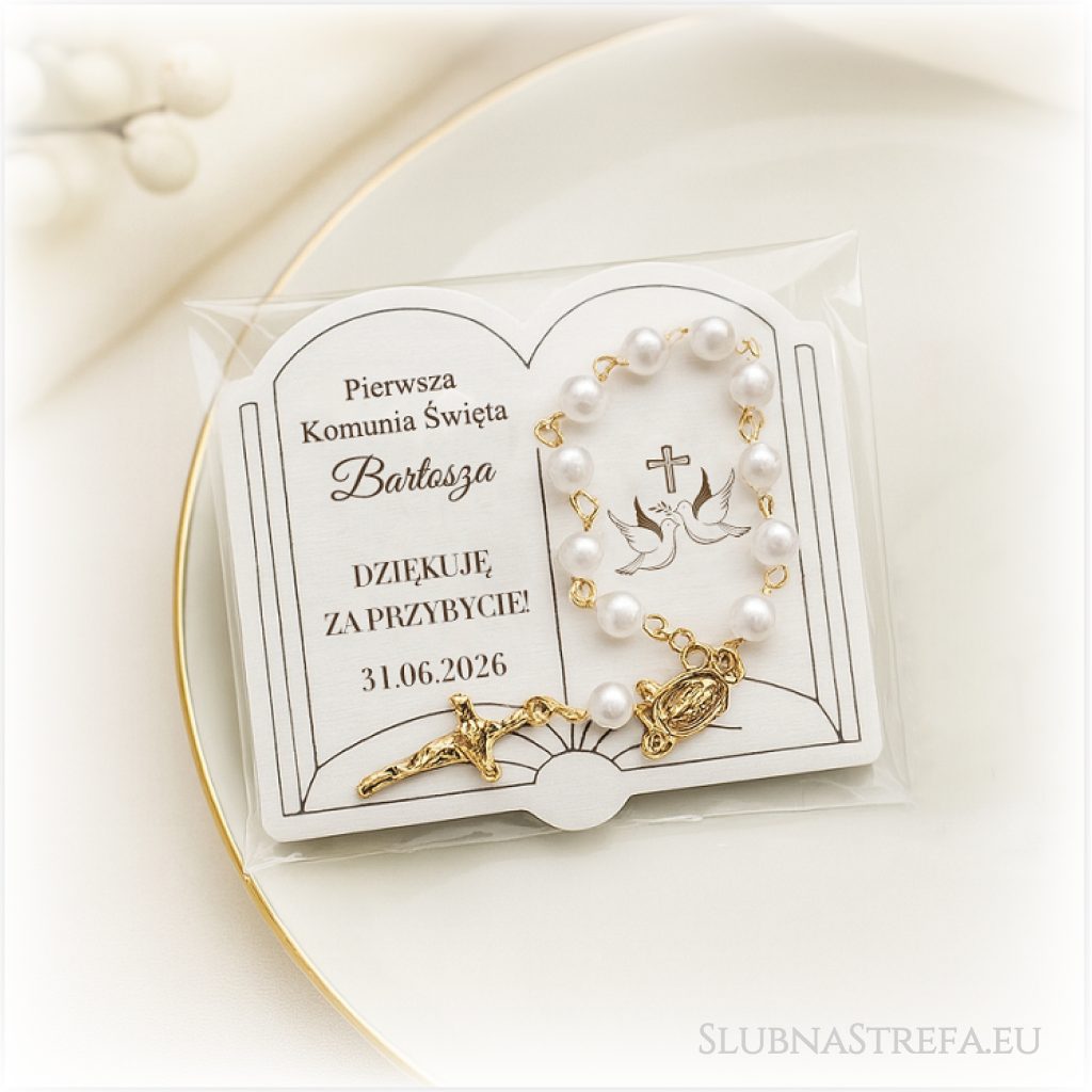 Magnes z różańcem, BIAŁY wzór księga. Cena: 9,00 zł Opis Do wyboru biały (płyta mdf jednostronnie biała) lub drewniany (sklejka brzozowa) Zobacz również inne: Obraz drzewko 3D dla chrzestnych89,00 zł Podziękowania dla matki i ojca chrzestnego serca45,00 zł Zaproszenie komunia wzór 85,00 zł Aniołek chłopiec lub dziewczynka8,50 zł